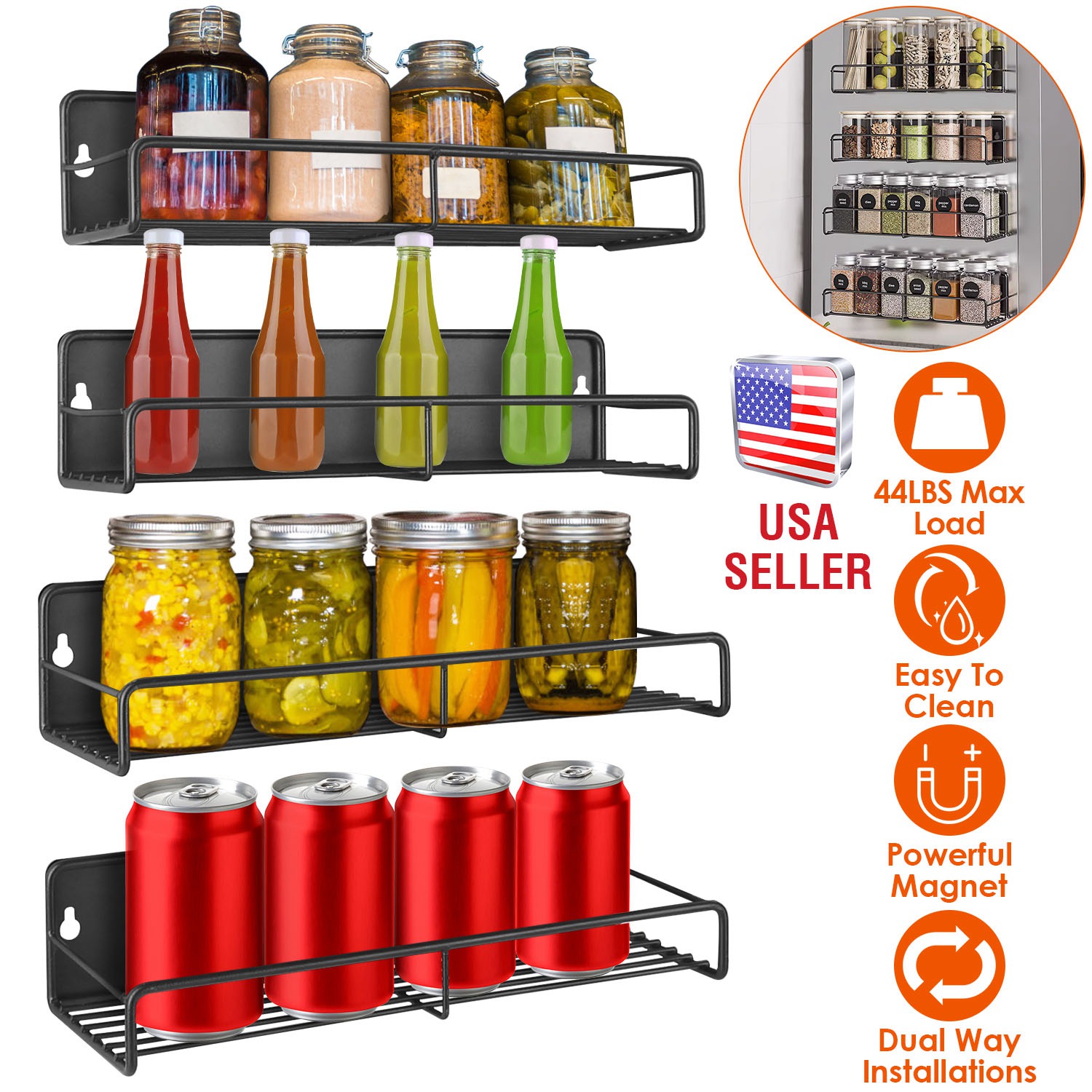 4Pack Strong Magnetic Spice Rack Organizer Fridge Storage Shelf for Jars Seasoning Tins Utensils Space Saver Holder for Refrigerator Microwave