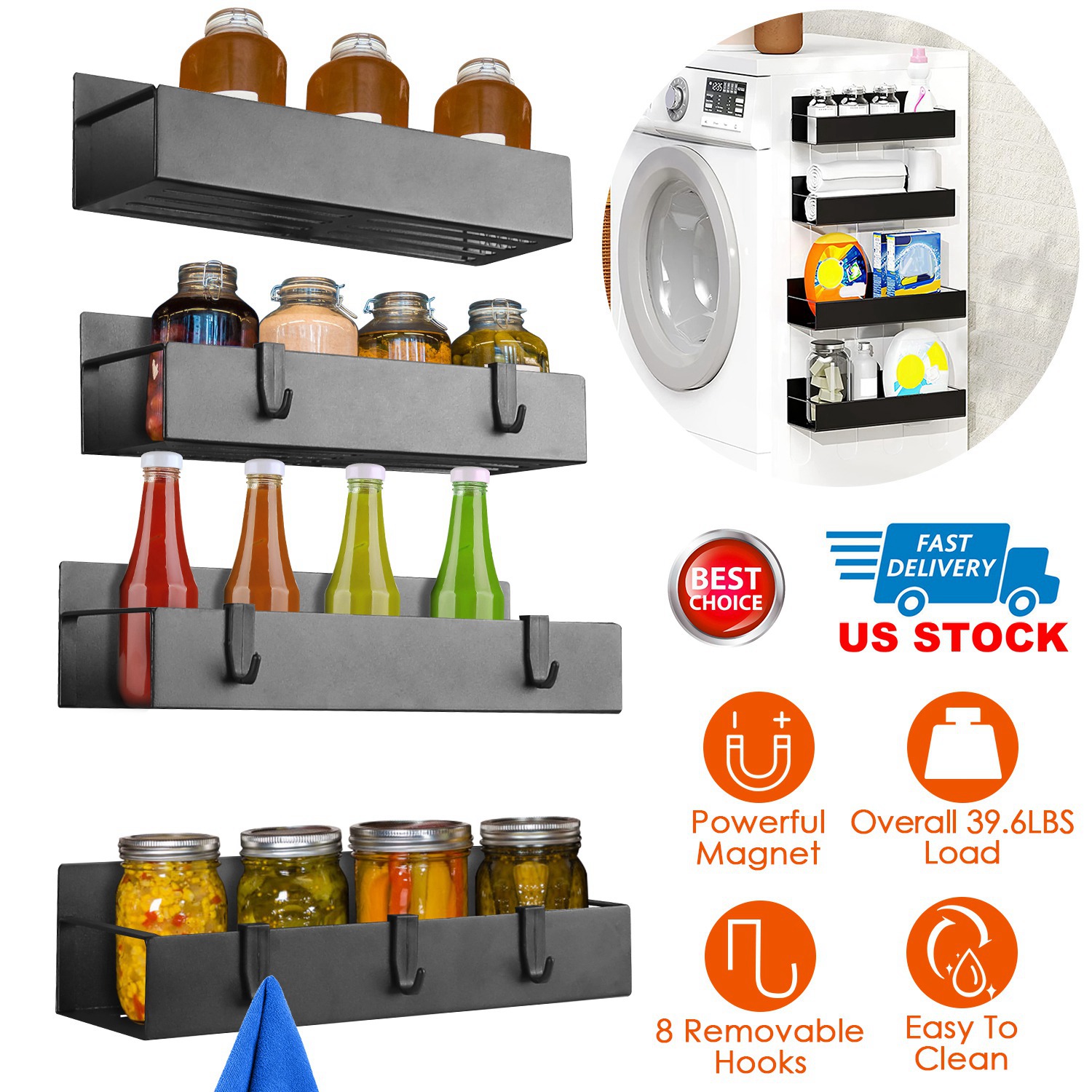 4Pcs Spice Rack Strong Magnetic Seasoning Storage Shelf with 8 Removable Hooks for Refrigerator Microwave Spice Storage Holder