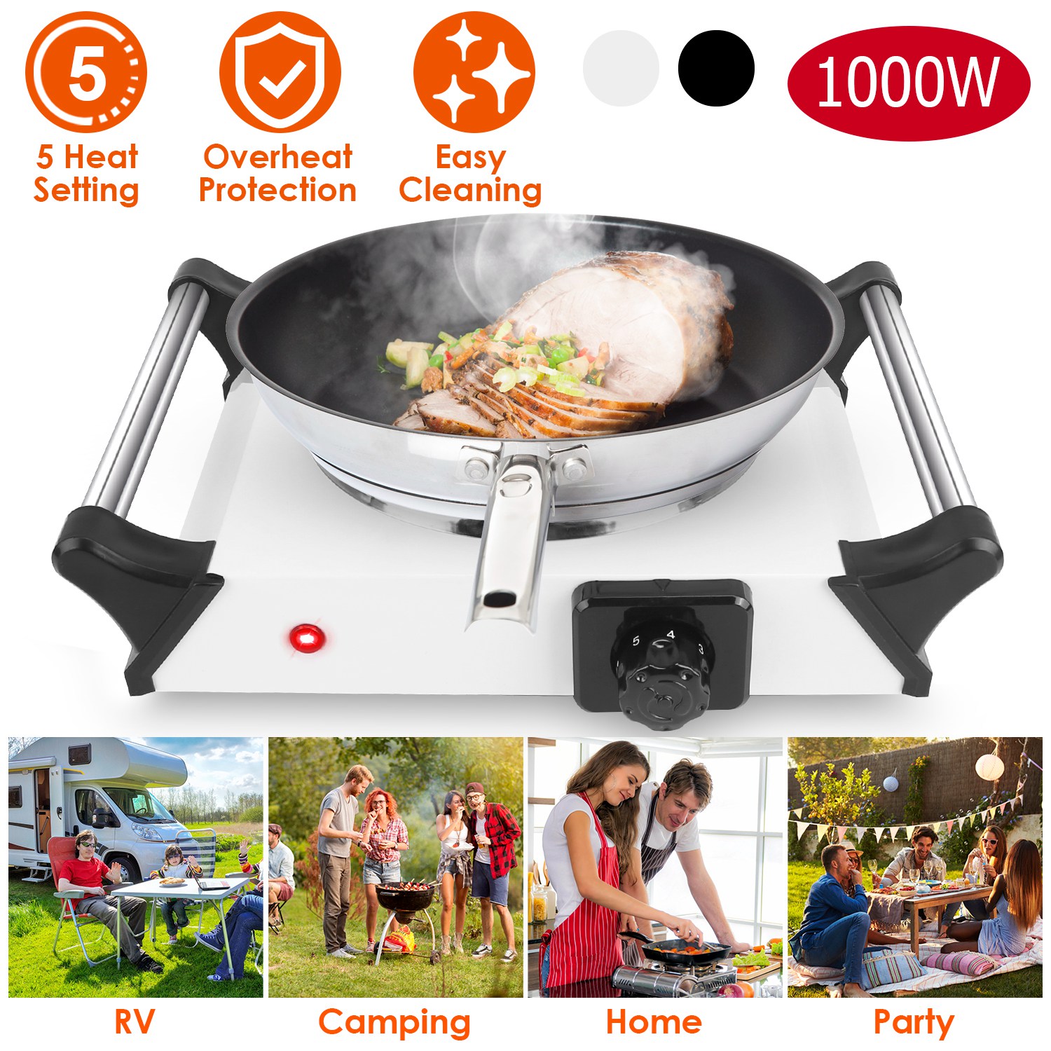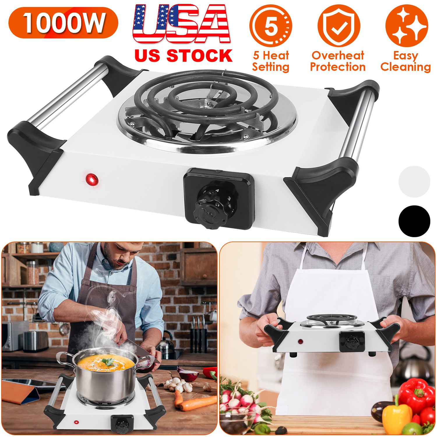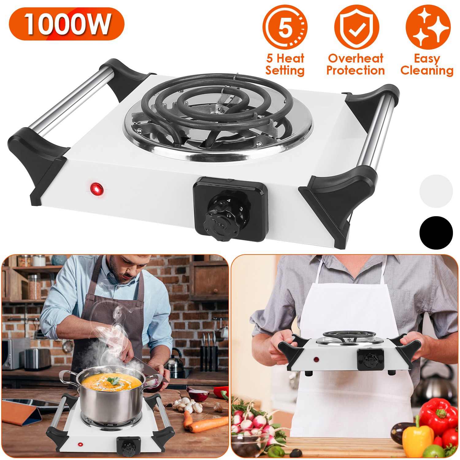 Home > 1000W Electric Single Burner Portable Coil Heating Hot Plate Stove Countertop RV Hotplate with 5 Temperature Adjustments Portable Handles