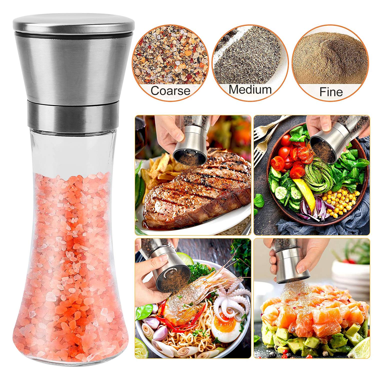 Stainless Steel Salt Pepper Grinder Tall Glass Sea Salt & Pepper Mill Shaker w/ Adjustable Coarseness